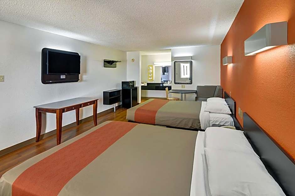 A seating area with a sofa bed and a cable TV is featured in this room. A microwave, a refrigerator, and coffee-making facilities are also provided.